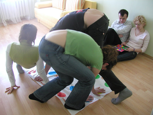 После такой пробежки по вертикальной дороге хорошо отдохнуть где-то. Вот мы, например, варили борщ и играли в твистер. Твистер - это игра, которая может принести вам славу самого гибкого человека, а также разрешит обниматься с чужим мужем (женой, девушкой, молодым человеком, да мало ли кем!?) на глазах у изумленной публики и без неприятных последствий.